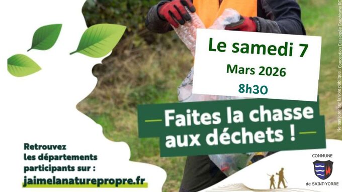 Par EMILIE MAILHOT, publié le jeudi 5 mars 2026 09:39 - Mis à jour le jeudi 5 mars 2026 09:39Faites la chasse aux déchets le samedi 7 mars à Saint-Yorre ! -